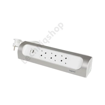 Sarokba illeszkedő elosztósor, 3x2P+F, USB-A + USB-C, 1 m vezetékkel, fehér-alumínium