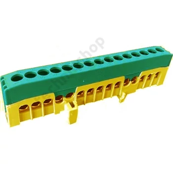 Sorkapocssín 63A zöld/sárga érintésvédett 1P csavaros 15csatl./16mm2 kalapsínre PE15-F2 Pollmann