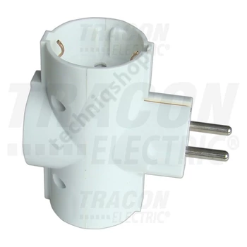 T-elosztódugó DIN(F)->3xDIN(F) fehér 16A 250V TRACON