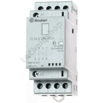 Installációs kontaktor sorolható 25A 250-440V AC 4-z 230V AC/DC-műk 2mod 22.34.0.230.4320 FINDER